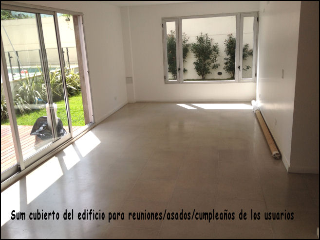 Edificio moderno, Solarium, Pileta (grande) Parrilla, sillas y sombrillas.
