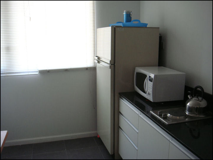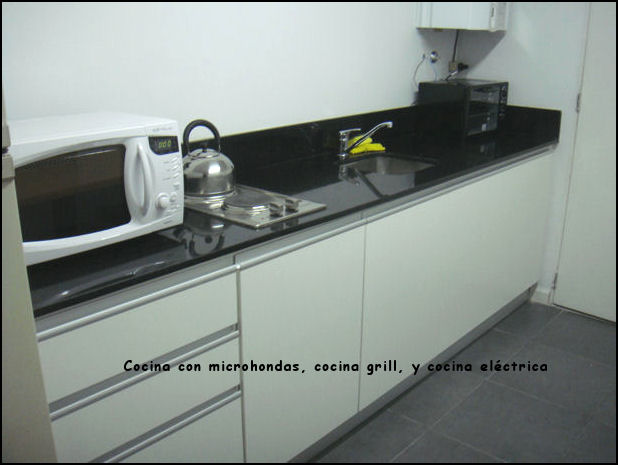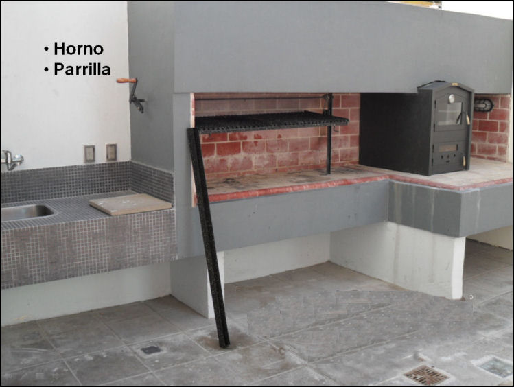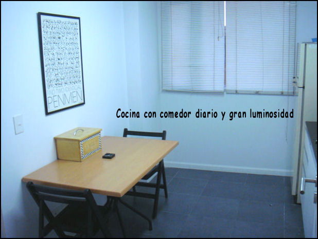 Cocina con Comedor Diario, Horno microondas, Horno Grill, Heladera.